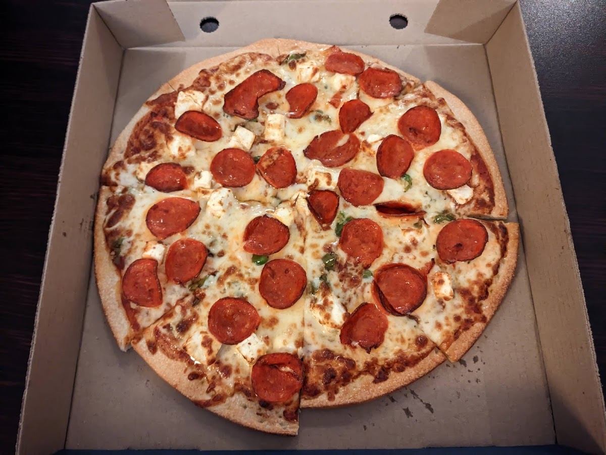 We ordered this food for takeaway. The pizzas were very flavorful with a great crust! The chicken tenders were delicious with honey mustard sauce and the chocolate hand pies were perfect for sharing. Great food for the money!